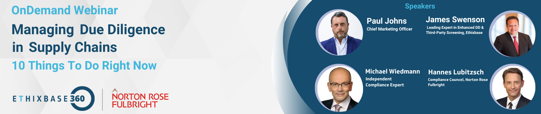Join our webinar with Compliance and Due Diligence Experts, with whom we will look at practical steps that you can take, to deal with this complexity and implement a pragmatic & effective supply chain due diligence program in collaboration with your third parties.
