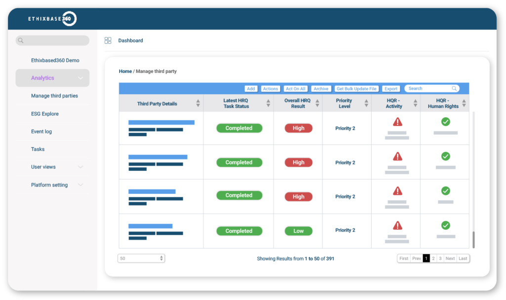 Ethixbase360 provides a structured and configurable approach to third-party risk assessment, ensuring consistent, risk-based decision-making across your third-party lifecycle.