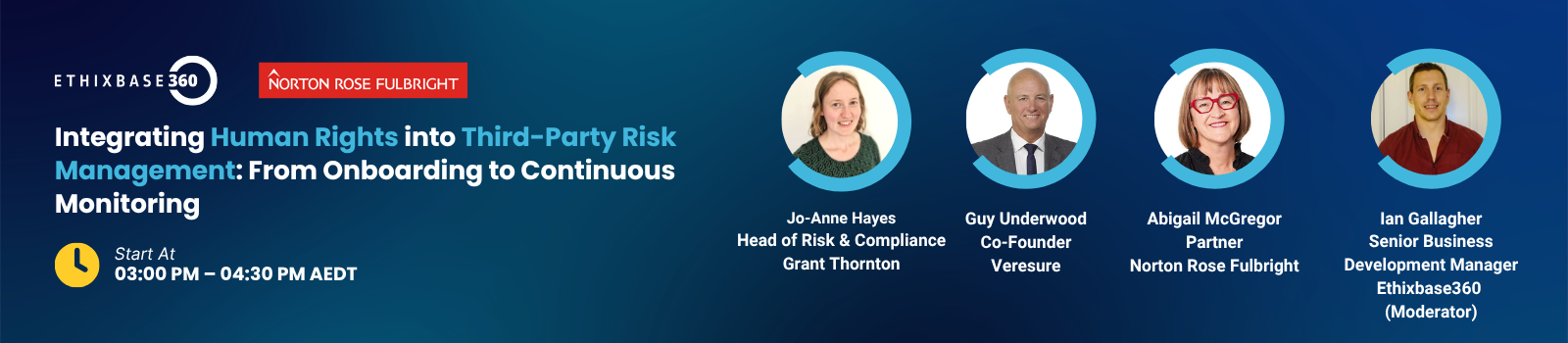 This invitation-only seminar brings together senior practitioners across legal, compliance, risk, procurement, and ESG to examine how organisations are embedding human rights considerations into their third-party risk management programs in a structured and defensible way.