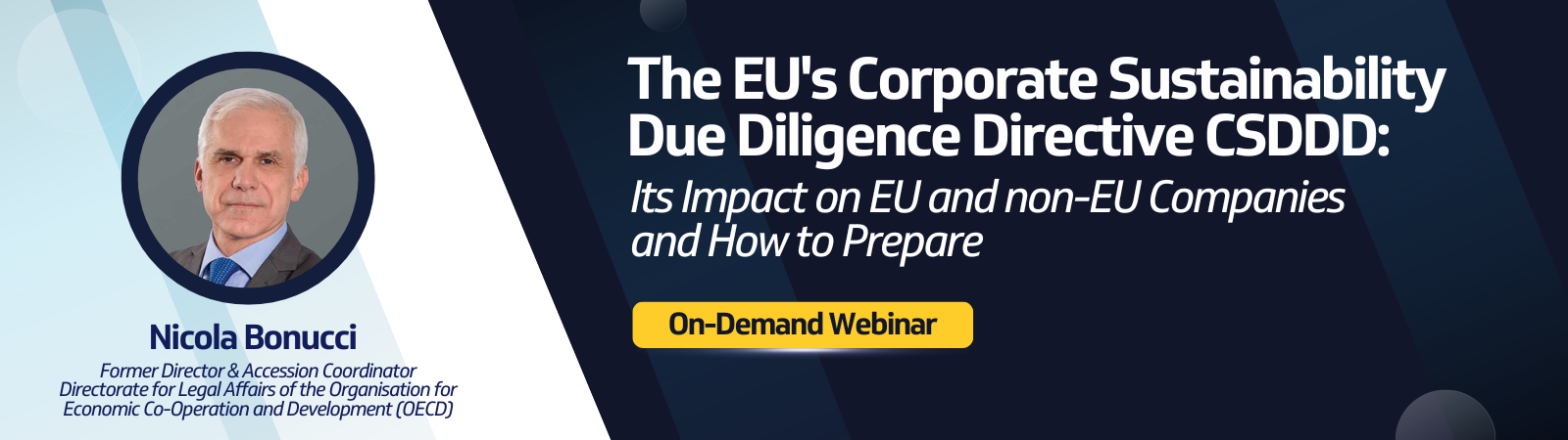 In this webinar, Nicola Bonucci, Former Director & Accession Coordinator Directorate for Legal Affairs of the Organization for Economic Co-Operation and Development, discussed what the CSDDD entails, who it impacts, and proactive steps both EU and U.S. companies can take to prepare.